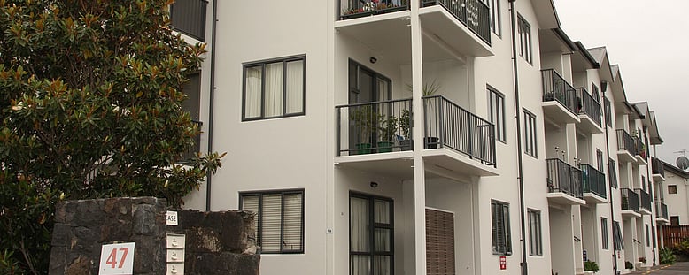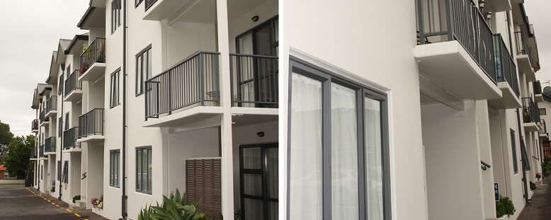 This low-rise apartment building in a central Auckland suburb needed a facelift to keep up with the neighbours - modern apartment and townhouse complexes.