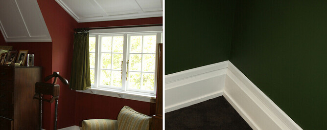 Your average homeowner might not be aware that dark paint colours are technically challenging to apply. As mentioned above, brush and roller marks are more visible and it’s tricky to create an even shade throughout the room. High-contrast transitions, such as those between the wall and skirtings and scotias, make any errors much more obvious.