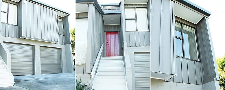 Our clients needed to update the exterior paintwork and were eager to use a dark paint colour that would add a point of interest to the home’s generic facade. Use of a dark paint colour meant our challenge was to prolong the lifespan of the new paint by minimising heat absorption.